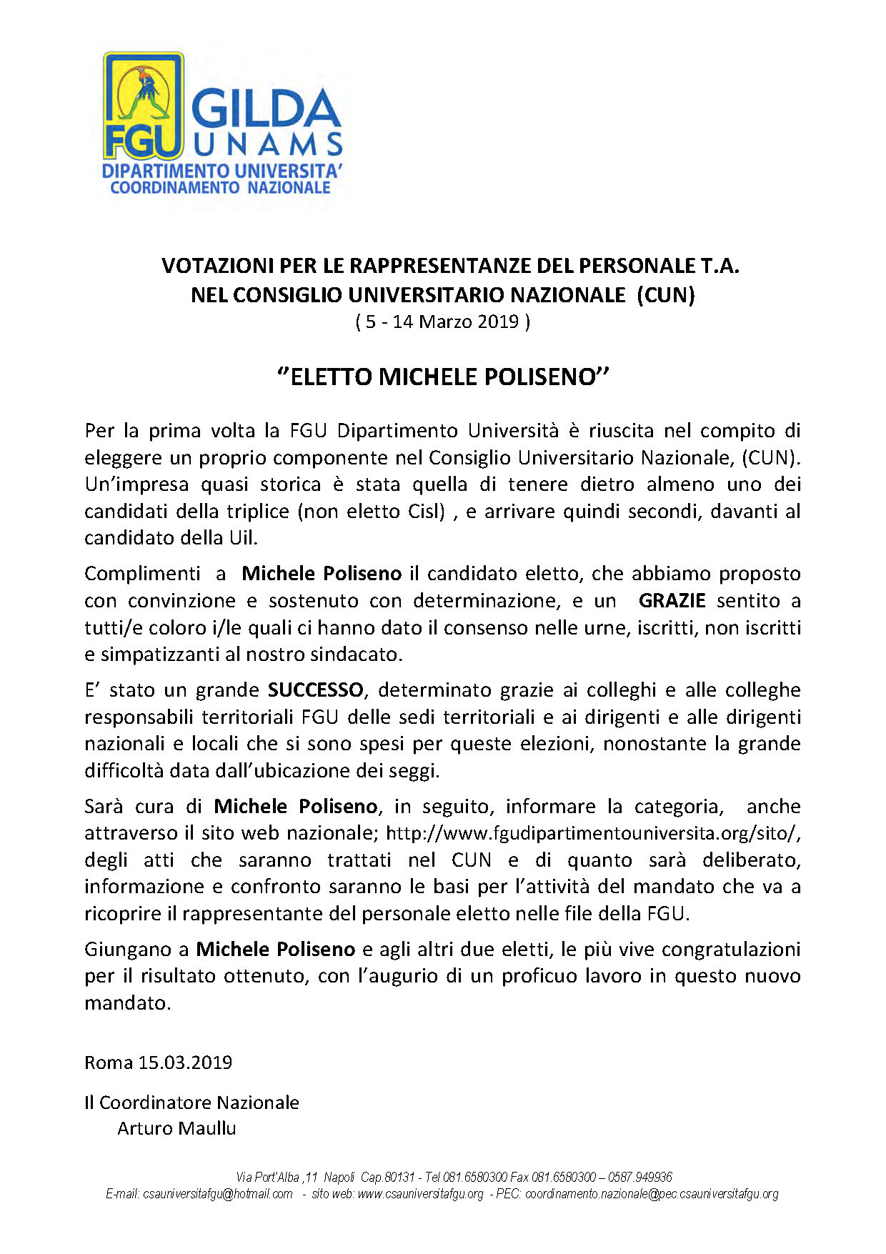 Contatori visite gratuiti COMUNICATO NAZIONALE FGU GILDA - DIPARTIMENTO UNIVERSITÀ