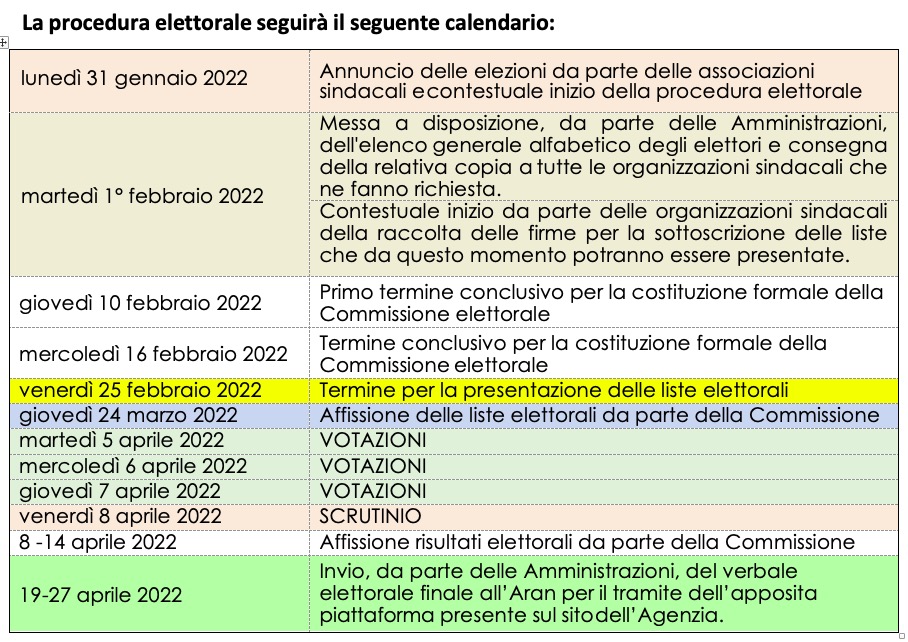 Si informa che, in conformità con Accordo Collettivo Quadro per la costituzione delle Rappresentanze Sindacali del 7 agosto 1998 e con il Protocollo per la definizione del calendario delle votazioni per il rinnovo delle Rappresentanze Sindacali unitarie del personale del comparto Istruzione e Ricerca (Circolare ARAN del 27 gennaio 2022), sono indette le elezioni per il rinnovo delle Rappresentanze Sindacali Unitarie.